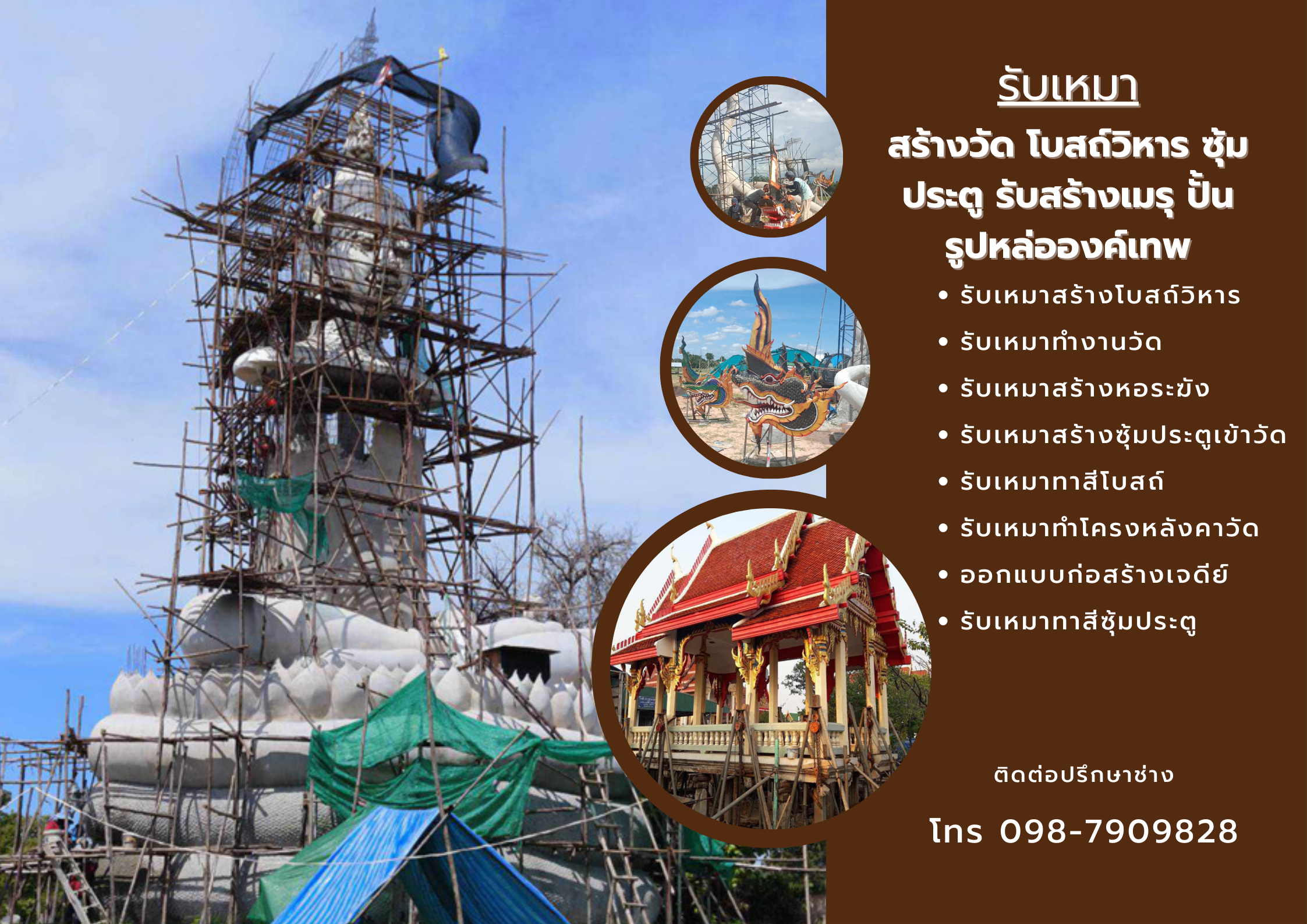 รับเหมาก่อสร้าง ที่รับสร้างสิ่งปลูกสร้างในวัด วิเคราะห์ รับออกแบบเจดีย์จังหวัดสกลนคร รับสร้างโบสถ์ รับปั้นรูปเหมือน รับปั้นพระ ออกแบบวัดรับซ่อม-สร้างโบสถ์ วิหาร ศาลา หอระฆัง หอฉัน ชุ้มประตูเข้าวัด เจดีย์ ยกโบสถ์ ดีดโบสถ์ เลื่อนโบสถ์ ปั้นปูนสด รับบูรณะองค์พระ โบสถ์ ศาลา วิหาร ช่างสีบูรณะโบสถ์ หรือจะเป็นงานสร้างใหม่ ออกแบบลวดลายไทยปูนปั้น ทรงไทยที่ทำจากปูนซีเมนต์ โดยใช้ไม้ป็นส่วนประกอบ หรืองาน โบสถ์ ศาลาการเปรียญ เมรุ เตาเผาศพปลอดมลพิษ กุฏิ ซุ้มประตู หอระฆัง หรือออกแบบตามวัตถุประสงค์ของทางวัด ทางบริษัทเรา มีช่างที่เชี่ยวชาญ